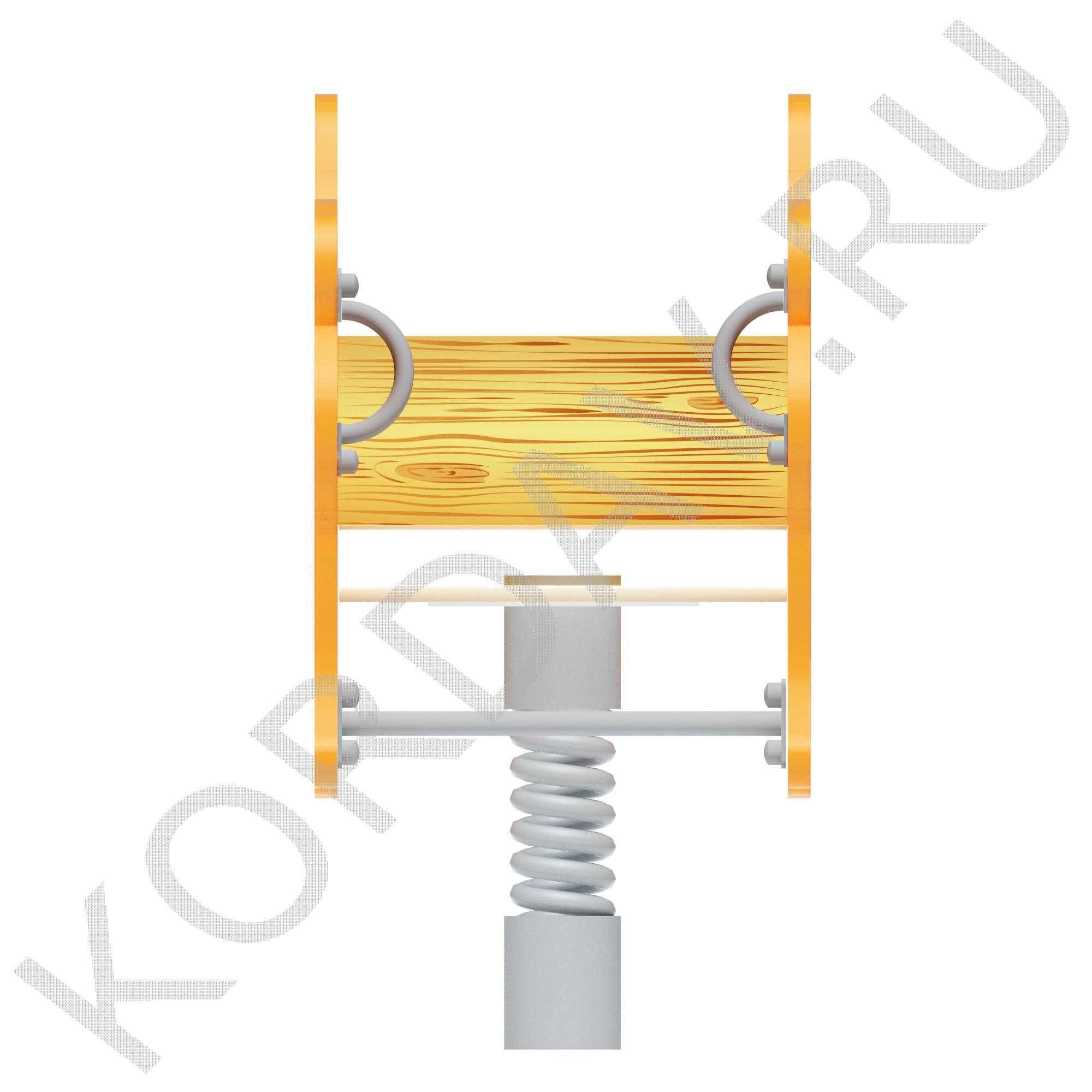 Пружина изготовлена из закаленной стали, которая выдерживает большие механические нагрузки. Ее размер составляет 490х127 мм. Борта в форме тигра выполнены из влагостойкой фанеры толщиной 18 мм. Их размер составляет 1050х800 мм. Лавка имеет габариты 540х230х18, она окрашена в бежевый цвет. Также предусмотрена спинка такого же цвета размером 540х230 мм. Для комфортного времяпрепровождения в качалке предусмотрены ручки и подставка для ног.
